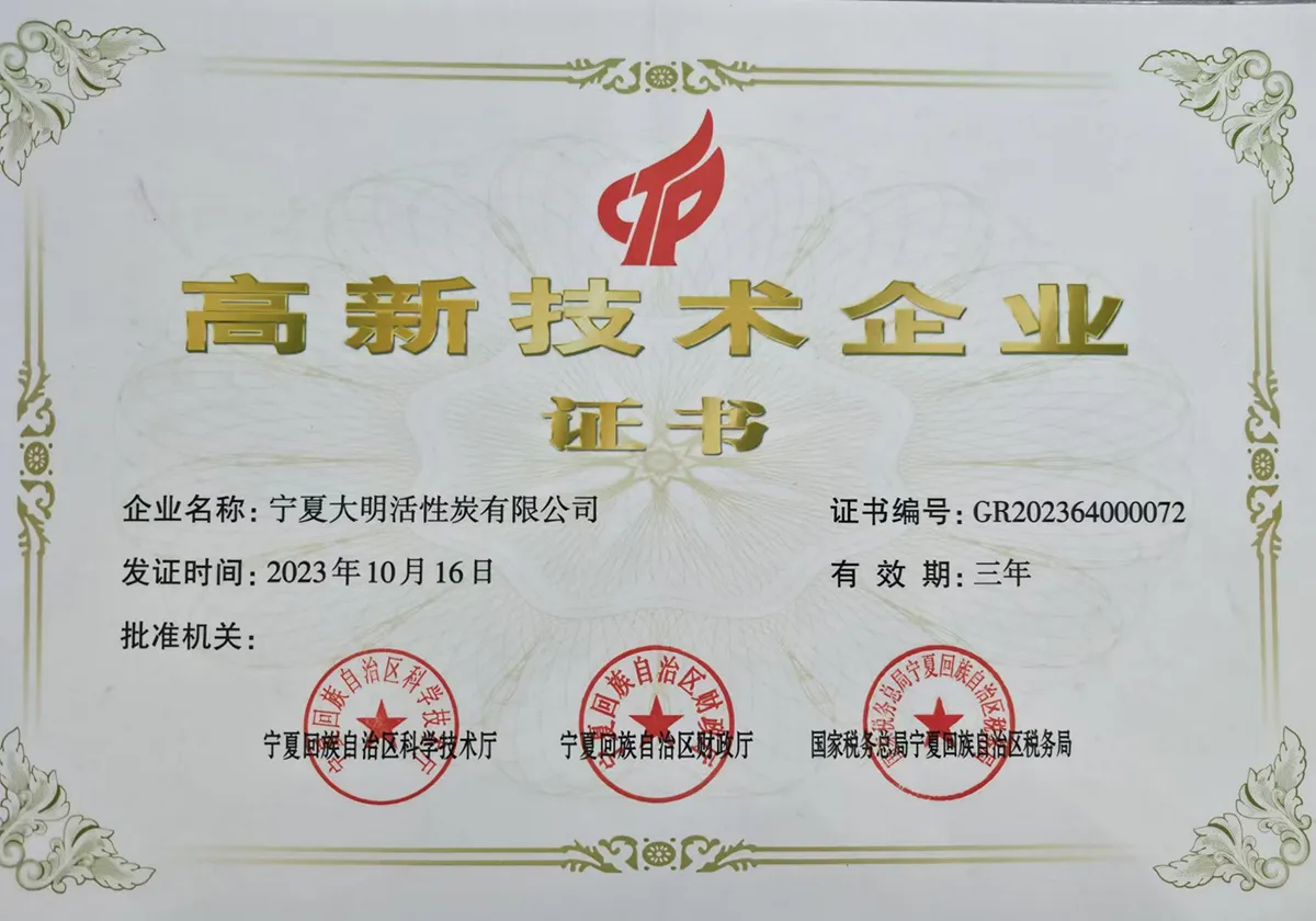 Компания уделяет большое внимание технологическим инновациям, постоянно ставя во главу угла потребности клиентов. Она активно разрабатывает новые продукты в соответствии с требованиями рынка и сотрудничает с Институтом технологий производства углеродных материалов Нинся в создании базы для исследований и разработок в области углеродных материалов. Имея в штате восемь технических специалистов по исследованиям и разработкам, компания получила один патент на изобретение и восемь патентов на полезные модели. На предприятии работают две интеллектуальные автоматизированные линии формования, три энергоэффективные линии карбонизации, три высокопроизводительные автоматизированные линии активации, две автоматизированные линии упаковки и три линии глубокой переработки. Благодаря высокой эффективности производства и широкому ассортименту продукции компания создала зрелые производственные мощности для специализированных и индивидуальных продуктов, обеспечив стабильный объем заказов. Компания имеет сертификаты ISO 9001, ISO 14001 и ISO 45001, а также обладает испытательным оборудованием и методологиями, соответствующими китайским, американским, японским и корейским стандартам, что обеспечивает полную прослеживаемость на всех этапах производства и контроля качества. В 2025 году будет инвестировано 27 миллионов юаней в создание: - одной печи активации типа 392 с годовой мощностью 5000 тонн активированного угля; - одной линии по производству катализаторов мощностью 2500 тонн в год; - одного центра НИОКР (площадью 1600 м²); - одного склада готовой продукции (площадью 1300 м²). Компания была удостоена награды «За прогресс в области бенчмаркинга промышленных предприятий автономного района» за 2020 год, получила статус «специализированного, усовершенствованного, отличительного и инновационного» предприятия автономного района, была признана научно-техническим малым и средним предприятием автономного района, получила статус научно-технического малого гигантского предприятия автономного района и была аккредитована как национальное высокотехнологичное предприятие.